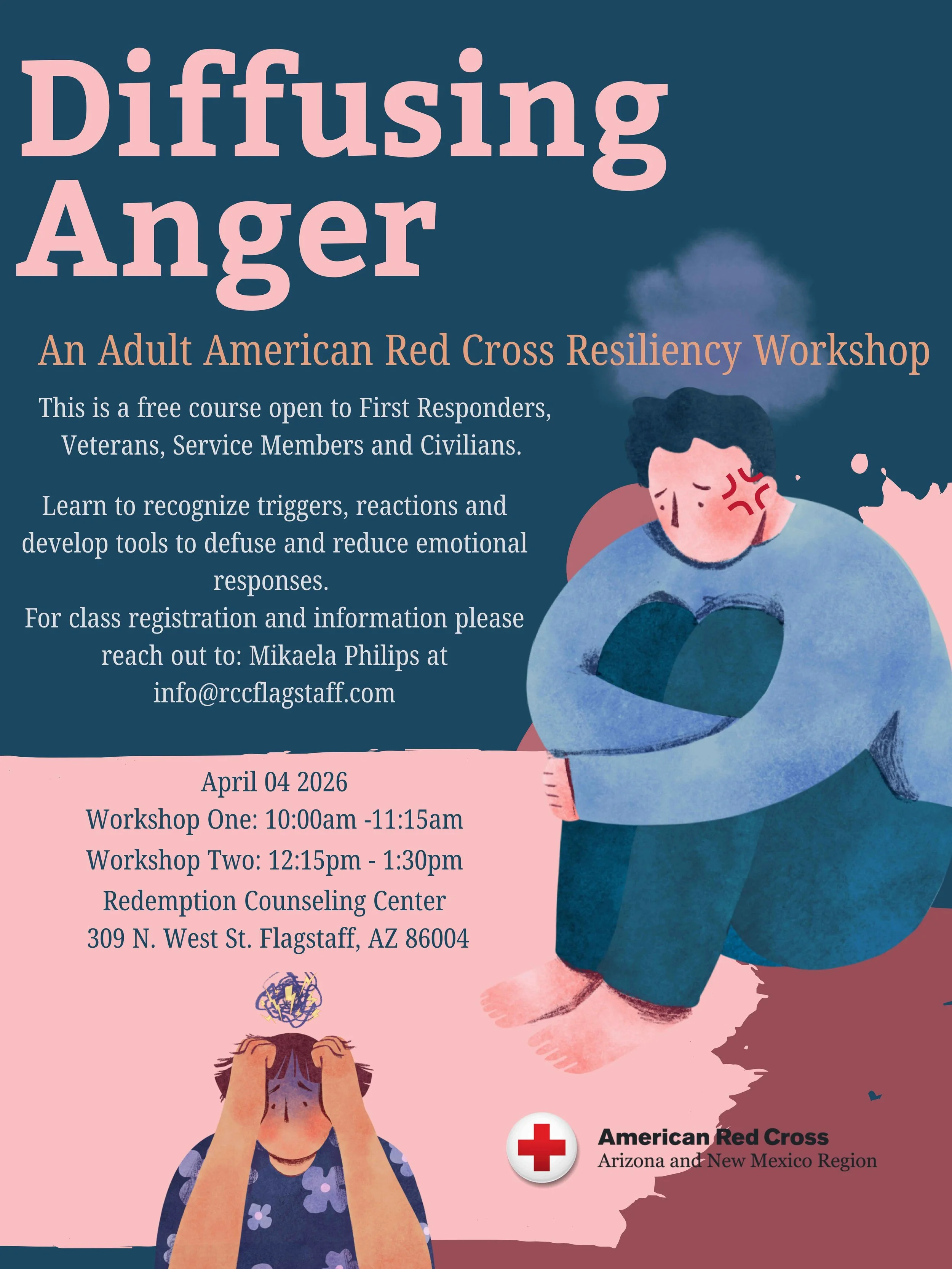 Redemption Counseling Center is partnering with the Red Cross to offer a resiliency Workshop for First Responders, Veterans, Service Members and Civilians. Please email info@rccflagstaff.com to register.